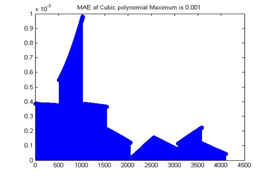 In figure 5 The MAE is computed over and entire Quadrant ie. 512*8 = 4096 samples. The peak MAE is under 10^-3. The MAE is defined as Maximum Absolute Error.