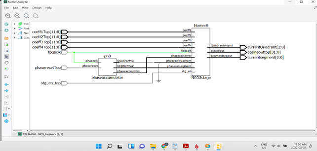 The final block is the selector block which selects between positive and negative half cycles. The topmost bit of the phase accumulator is used to make the selection.