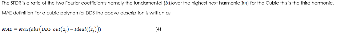 In Equation (4), the DDS_out is estimated by a cubic polynomial represented through Equation (2.14). Its is the difference between the DDS/NCO output and an ideal sinusoid.